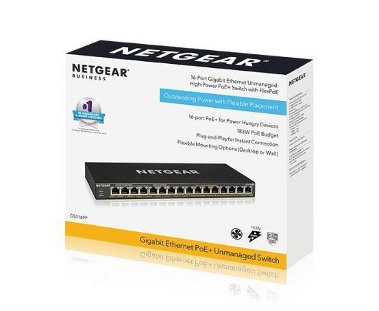 Netgear 16-Port Gigabit PoE+ Unmanaged Switch (16 PoE ports) @183W